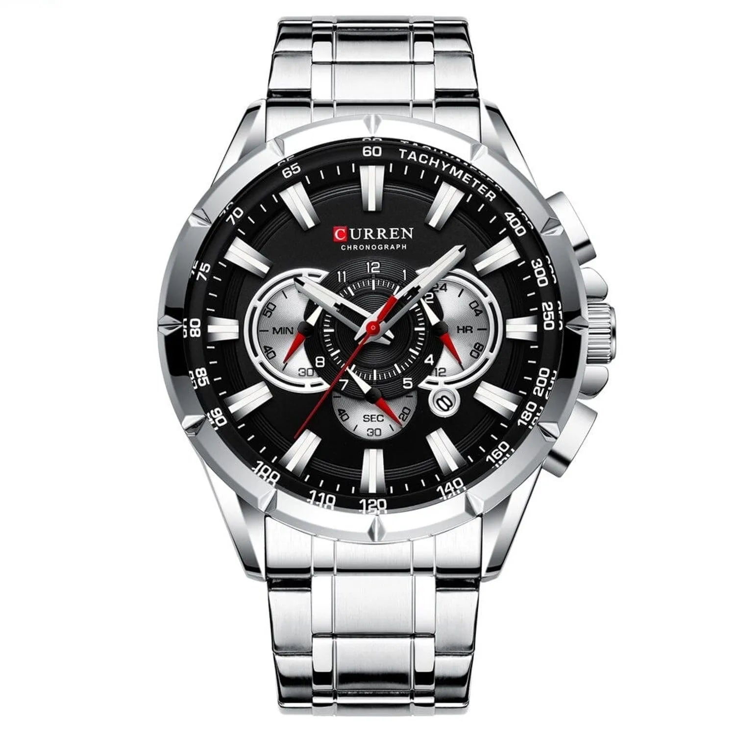 Destaca en cualquier ocasión con este imponente reloj Curren, diseñado para hombres que valoran la elegancia y el carácter. Su esfera negra con detalles dorados aporta un aire sofisticado y moderno, mientras el brazalete metálico asegura resistencia y confort.